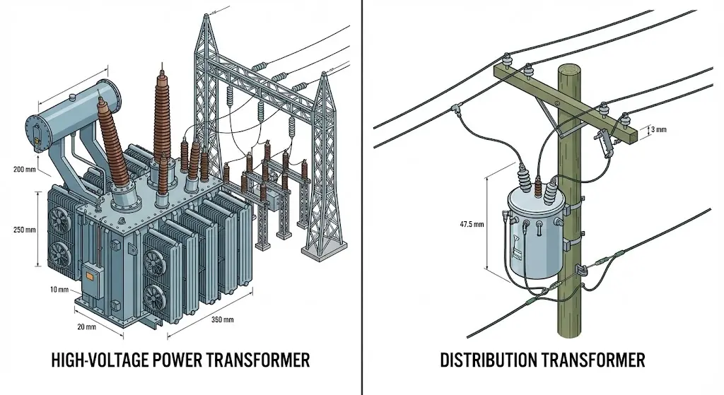 | Feature | Power Transformer | Distribution Transformer |